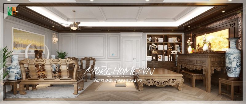 Sàn gỗ được ưa chuộng bởi tính chịu ẩm chịu nhiệt cao đem lại tính thẩm mỹ trang trí cho phòng thờ